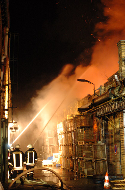 Gegen 2:30 wurden die Einsatzkräfte zum ehemaligen Kabelmetall-Gelände gerufe, mit ihren Löschzügen aus Rosbach, Herchen, Dattenfeld und Leuscheid rückte die Feuerwehr Windeck an. Aus Eitorf unterstützte eine Drehleiter. Rund 80 Wehrmänner waren in der Nacht im Einsatz. Um den enormen Wasserverbrauch decken zu können, pumpten die Einsatzkräfte Löschwasser aus der nahegelegenen Sieg. Gefahr für die Anwohner bestand nicht. Ein Messtrupp der Feuerwehr untersuchte die Luft in der Umgebung und gab Entwarnung. Der Rauch war sehr stark, zog aber nach oben ab.