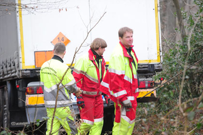 Aus dieser misslichen Lage konnte den 35-jährigen Brummifahrer nur zwei Spezial-Abschlepper befreien: Der Mann aus Sachsen-Anhalt hatte sich mit seinem 16 Tonnen schweren Gefährt auf einem Waldweg bei Hatterscheid verkeilt. Als es weder vor, noch zurück ging, rief er Hilfe. Nach fast sieben Stunden stand der Lastwagen wieder auf der Straße, die Bergung gestaltete sich schwierig